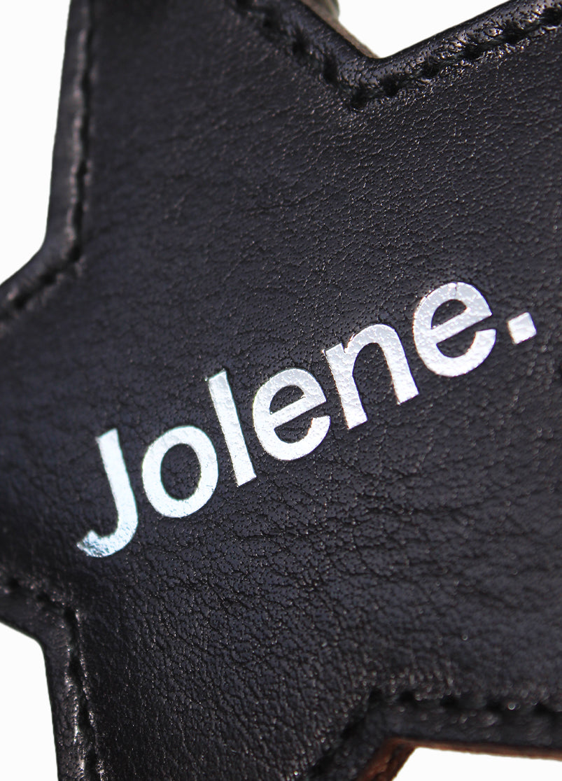 Our Poppy keyring pairs smooth black leather with playful polka dots on the reverse, and features our Jolene logo in silver foil emboss on the front. A perfect accompaniment to any bag, it’s simple, functional, and designed for your everyday essentials.